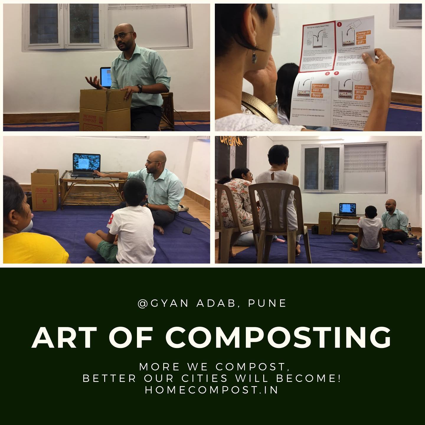 Sarang conducting a small session on Art of Composting at Gyan Adab, Pune – Image credit The Urban Farm